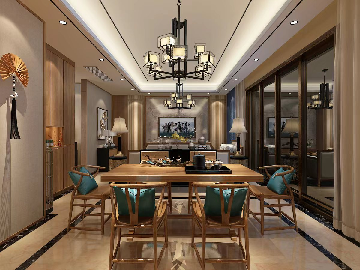 客厅入户与餐厅巧妙相连,也属餐厅,客厅也能一览所有,空间感极强,动线所及视线都有禅意小景,每一个空间角落都不失美感。