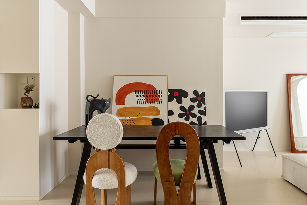屋主家墙顶颜色通刷,在清淡之间呈现出软糯的温柔质感,透出优雅恬静的空间魅力。相比于白色,多了一分醇厚;相比与咖色,少了一分浓烈。这就是本案奶油风的魅力所在吧!