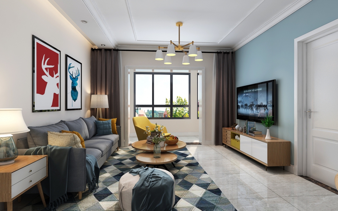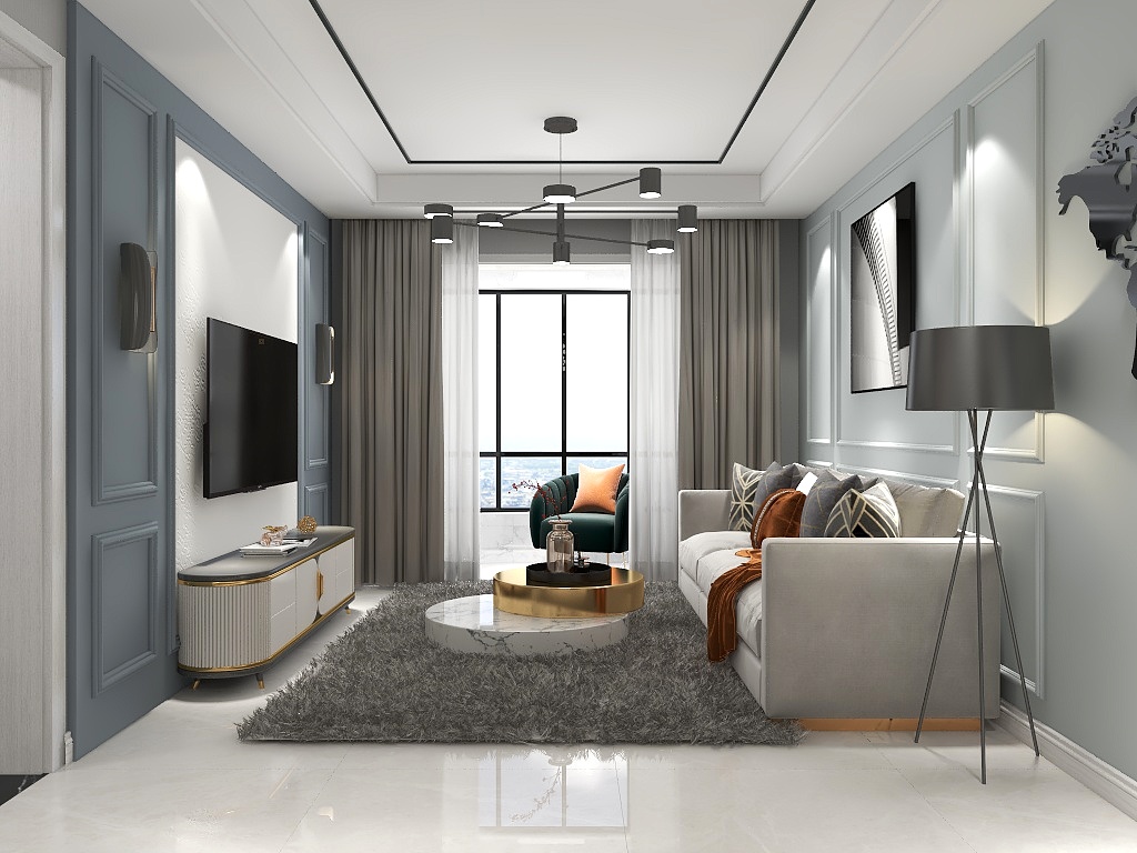 窗帘侧边是否有家具或其他设备,比如在窗帘侧边要放置柜子、家具或电器的话,如果窗帘贴墙装就会影响到这些家具电器的摆设了,这样就需要根据实际情况来设计安装窗帘了。比如,左侧有壁挂空调与电视柜,而且还有吊顶造型,如果窗帘贴墙安装的话,就会挡到空调的出风口,所以就没有贴墙安装。