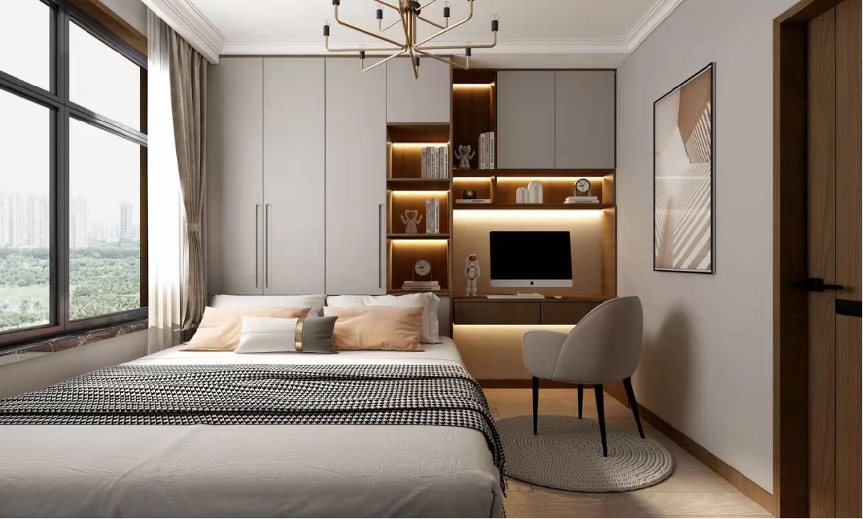 如果榻榻米房间本身就是作为卧室使用,此时窗帘不仅要做双层,同时入住人对光线敏感的话,最好做窗帘盒,同时错位交叉轨道,避免漏光,遮光布帘布局,满足休息的需要。