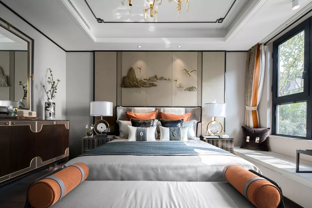 米白色是一种暖色调,在中式、美式等风格搭配里,也是一种不错的选择,能营造出温馨端庄的设计效果。